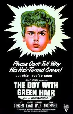 The Boy with Green Hair is a 1948 American fantasy-drama film in Technicolor directed by Joseph Losey in his feature film directorial debut.[4][5] It stars Dean Stockwell as Peter, a young war orphan who is subject to ridicule after his hair mysteriously turns green, and is based on the 1946 short story of the same name by Betsy Beaton. Co-stars include Pat O'Brien, Robert Ryan, and Barbara Hale.[6][7]