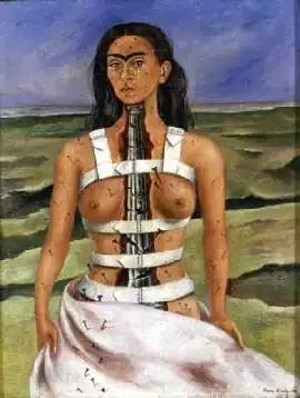 The Broken Column (La Columna Rota in Spanish) is an oil on masonite painting by Mexican artist Frida Kahlo, painted in 1944 shortly after she had spinal surgery to correct on-going problems which had resulted from a serious traffic accident when she was 18 years old. The original is housed at the Museo Dolores Olmedo in Xochimilco, Mexico City, Mexico.[1]