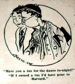 "Ah, the college boys, the college boys! I daresay that if all the sub-freshman who are intending to come to Brown could see it for what it is, a fraternity-ridden and lethargic academy of middle-class “boosters,” they would change their minds about starting for Providence next fall. From the dot of 9 o’clock when we rush in to fear God for fifteen minutes every morning till Cap Cameron 'the campus policeman` puts the last blowzy drunk to bed, the spectacle is the same ..."[10]