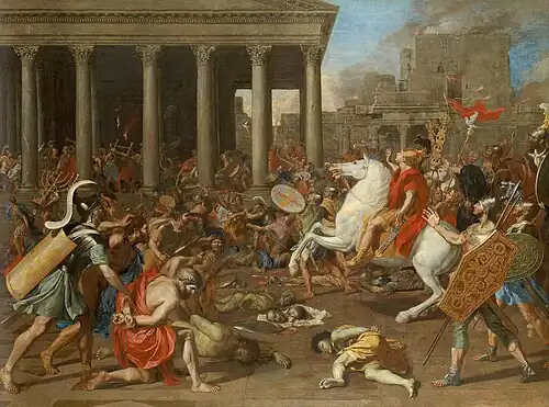 The capture of Jerusalem by Titus in AD 70 is the subject of several history paintings by Nicolas Poussin. The earliest version, dated to 1626, is in the Israel Museum, catalogued as The Destruction and Sack of the Temple of Jerusalem.[1] Another version, dated to 1635, is in the Kunsthistorisches Museum in Vienna, catalogued as Destruction of the Temple in Jerusalem by Titus (German: Zerstörung des Tempels in Jerusalem durch Titus).[2]