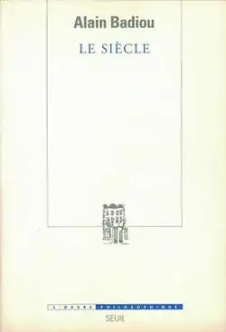 The Century is a book about politics, philosophy and literature by Alain Badiou, first published in French by Éditions du Seuil in 2005; the English translation by Alberto Toscano was published by Polity Press in 2007. The thirteen chapters of the book are presented as lessons derived from a seminar Badiou gave at the College International de Philosophie between 1998-2001. Badiou's analysis of the 20th century is drawn from his unique encounter with 20th century poetry and theater, literary theory, totalitarianism, and the search for meaningful narratives that are neither logical nor dialectical. He warns against "animal humanism" and advocates "formalized inhumanism".[1]