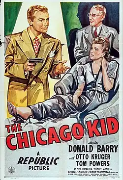 The Chicago Kid is a 1945 American crime film directed by Frank McDonald and written by Jack Townley and Albert Beich. The film stars Don "Red" Barry, Otto Kruger, Tom Powers, Lynne Roberts, Henry H. Daniels Jr. and Chick Chandler.[1][2][3] The film was released on June 29, 1945, by Republic Pictures.
