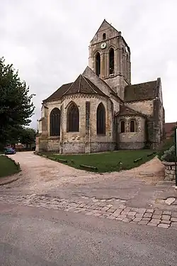 The painting depicts the Église Notre-Dame-de-l'Assomption in Auvers-sur-Oise, France, 27 kilometres (17 mi) north-west of Paris.