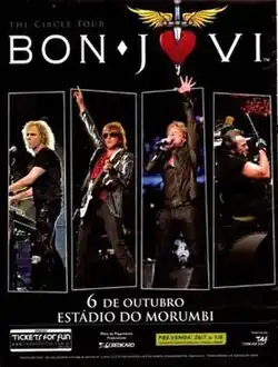 The Circle Tour was a worldwide concert tour in 2010 by American rock band Bon Jovi to promote their 11th studio album The Circle (2009).[2] The tour started in North America and progressed to Europe, South America, Asia and Australia. It included a 12-night run at the O2 Arena in London and four nights in East Rutherford, New Jersey to celebrate the opening of the Meadowlands Stadium. The tour was the #1 top-grossing concert tour for 2010 in the United States.