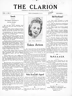 The Clarion was a newspaper established in New Glasgow, Nova Scotia, by Carrie Best in 1946. It was the third publication in the province owned and published by a Black Canadian,[1] after The Atlantic Advocate established in 1915 and The Nova Scotia Gleaner established in 1929.[2] On the masthead below the newspaper's name was the text "Published in the Interest of Colored Nova Scotians".[1]