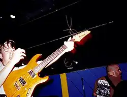 Morning Again was formed in November 1995, by guitarist and principle songwriter John Wylie and drummer Louie Long.[11][5][12] The pair had previously played together in the metallic hardcore bands Culture and Organized Pain.[13][7][12] After practicing with vocalist César Morales for about a month, they recruited new vocalist Damien Moyal, who had also previously played in Culture with Wylie, and Reach (another metallic hardcore band) with Long,[14] and was then a member of the melodic metalcore band Shai Hulud.[5][15] Although Moyal and Wylie had suffered conflicts of interest in Culture nine months prior (which had led to Moyal's departure shortly before a tour and hasty replacement by Long), the two hoped to reconcile their differences, which in turn inspired the lyrics to Moyal's first Morning Again song, "Turning Over".[5][7] In December 1995, the band was completed with the addition of second guitarist Michael Wolz (formerly of Uplipht and After All) and bass guitarist Eric Ervin (formerly of Discount).[16]