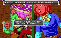 Minamata wanted to avoid the need for the regular use of a hint book inside the game, hoping to avoid punishing puzzles that Sierra games from her childhood sometimes featured.[2] She decided to use an EGA color palette because its limitations force artists to put a perspective on how the world is perceived, instead of recreating reality.[6]