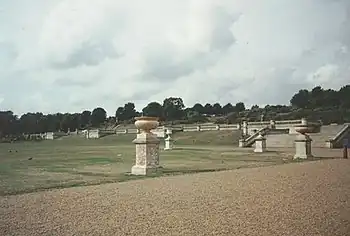 The development of ground and gardens of the park cost considerably more than the rebuilt Crystal Palace. Edward Milner designed the Italian Garden and fountains, the Great Maze, and the English Landscape Garden. Raffaele Monti was hired to design and build much of the external statuary around the fountain basins, and the urns, tazzas and vases.[40]