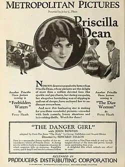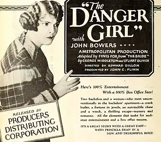 The Danger Girl is a 1926 American silent drama film directed by Edward Dillon and starring Priscilla Dean, John Bowers, and Gustav von Seyffertitz.[1][2]