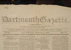 - ^ Volume 1, No. 1 issue of the Dartmouth Gazette. Page 2.
