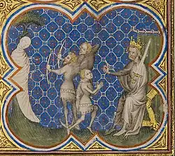 The Dead King and his Three Sons and The King's Sons Shooting at Their Father's Corpse are titles for a story sometimes depicted in medieval and Renaissance art, initially mostly in miniatures in illuminated manuscripts, and later in engravings, paintings and other media.[1]