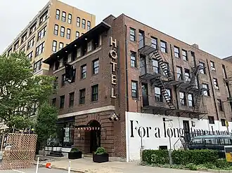 Built in 1912, 122 Fountain Street was used as a shelter run by the Episcopal church and also operated as several adult entertainment establishments known for their illegal actions including a strip club called the Sportsman's Inn. Elements of the hotel's design and decor reference the building's origins. In 2014 the building was turned into the hotel that stands there today.