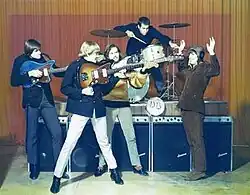 The song issued along with the flip side "Is it Better" on the New Mexico-based Boyd label in July 1966.[3] The label accidentally printed "the Beloved Ones" on the label, but the song became successful, topping Tucson radio play lists throughout the summer of 1966, becoming the best-selling song in Tucson that year, staying at #1 for several weeks on the local charts.[1][2][3][4][5] Label owner Bobby Boyd approached Columbia Records, who, in a buyout deal, signed them to the prestigious label and re-released "Peep Peep Pop Pop" in September, and it received some airplay nationwide, managing to bubble just under Billobard's Hot 100.[1][2][3][5] Even a year later, on Dick Clark's "Rate a Record" segment of American Bandstand, it was chosen over the Count Five's "Psychotic Reaction".[1][2] One factor limiting its success was that Columbia did not print enough copies.[1][2] The Dearly Beloved played numerous gigs in Tucson and Los Angeles, making appearances at venues on Sunset Strip, such as Gazzari's and the Hullaballoo.[1][2]