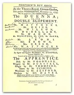 1. ^ Fiske, Roger. English Theatre Music of the Eighteenth Century (London, 1973) p.414