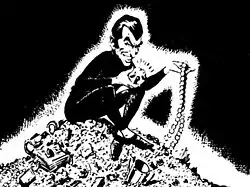 "The Dwarf" was among the new storylines devised for the comic, and was drawn by the experienced Tom Kerr.[2] The strip was unusual due to the Dwarf frequently directly addressing the audience, a device usually used in humour strips rather than adventure material. Most weekly episodes ended with a frame of the Dwarf gently taunting the readers - or, as the character often called them, "multitude" with his success and his plans to commit another daring crime the next week.[3]