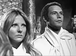 - Liana (Katie Saylor): "Daughter of an Atlantean father and an extraterrestrial mother". The beautiful blonde Liana possessed greater than human physical strength due to her mother being from a planet with a higher gravity than Earth. (However, not much use was ever actually made of Liana's strength.) She also had powerful psychic abilities (presumably due to her mixed heritage) which allow her to, among other things, telepathically communicate with animals - especially her cat Sil-El. Saylor left the show after the episode "Turnabout" due to illness. In the next episode "Riddles" the reason for her not being present with the group was given that she opted to stay a few days at Coriel to help the inhabitants work out their new government and would catch up with the group later.
