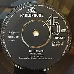"The Farmer" is the debut single by Irish rock band Thin Lizzy, released on Parlophone in 1970. It is the only recording by the original four-piece line-up of Phil Lynott, Eric Bell, Brian Downey and Eric Wrixon.