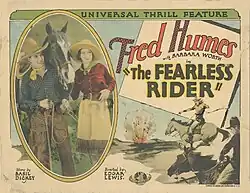 The Fearless Rider is a 1928 American silent Western film directed by Edgar Lewis and written by Basil Dickey and Gardner Bradford. The film stars Fred Humes, Barbara Worth, Ben Corbett, Gilbert Holmes, Buck Connors and William Steele. The film was released on January 15, 1928, by Universal Pictures.[1][2][3]