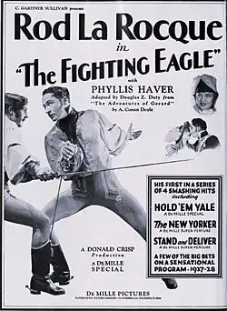 The Fighting Eagle is a 1927 American silent adventure and romantic drama film starring Rod La Rocque. It was directed by Donald Crisp and it was produced by Cecil B. DeMille.[1][2] The film is set during the Napoleonic Era.