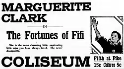 The Fortunes of Fifi is a 1917 American silent historical romance film directed by Robert G. Vignola and starring Marguerite Clark. Based on the novel of the same name by Molly Elliot Seawell, the film is set in France and takes place during the era of Napoleon Bonaparte.[1] The film is now presumed lost.[2][3][4]