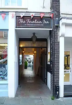 The Fountain Inn is a grade II listed pub at 53 Westgate Street, Gloucester, England. It is mentioned in an Abbey Rental document of 1455. Some of the building is from the late 16th century but it was mostly rebuilt in the late 17th century, altered in the 18th century, and remodelled around 1900.[1]