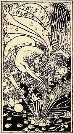 W. H. Auden recreated the fable at some length in verse as part of the three "Moralities" he wrote for the German composer Hans Werner Henze to set for orchestra and children's chorus in 1967. The theme of all three is the wrong choices made by people who do not sufficiently appreciate their good fortune when they have it. The first poem of the set follows the creatures' fall, from a state of innocence when In the first age the frogs dwelt at peace, into dissatisfaction, foolishness and disaster.[21] Two centuries earlier, the German poet Gotthold Ephraim Lessing had given the theme an even darker reinterpretation in his "The Water Snake" (Die Wasserschlange). Taking its beginning from the Phaedrus version, the poem relates how a frog asks the snake why it is devouring his kind. 'Because you have invited me to,' is the reply; but when the frog denies this, the snake declares that it will therefore eat the frog because he has not. Part of a set of variations on Aesopic themes, this appears as the last in Gary Bachlund's recent setting of five fables by Lessing (Fünf Fabelen, 2008).[22]