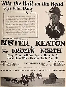 The Frozen North is a 1922 American short comedy film directed by and starring Buster Keaton.[1] The film is a parody of early western films, especially those of William S. Hart. The film was written by Keaton and Edward F. Cline (credited as Eddie Cline). The film runs for around 17 minutes. Sybil Seely and Bonnie Hill co-star in the film.