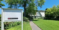 The hospital building was removed from its Hēnui site, renamed "The Gables" and moved to Brooklands, the former estate of Captain Henry King, who was in charge of the hospital 56 years earlier. The King family lived in the house until the death of Mrs King in 1934, when it was offered to the city of New Plymouth. Private tenants leased the building until 1983, when a restoration of the building commenced which lasted for two years. After that, it was re-opened as an arts centre in 1985.[1] Owned by the New Plymouth District Council, "The Gables" is now the gallery for the North Taranaki Society of the Arts. Another renovation of the building took place in 2017, when the original shingle roof was replaced with the same cedar shingles, imported from Canada.[8]