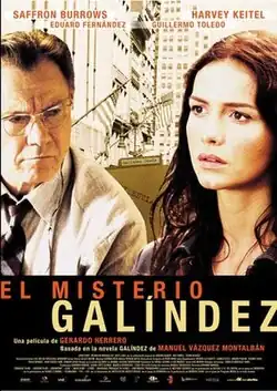 The Galíndez File (Spanish: El misterio Galíndez, lit.'The Galíndez Mystery') is a 2003 drama film directed by Gerardo Herrero and starring Saffron Burrows, Harvey Keitel, Eduard Fernández and Guillermo Toledo. It is based on Manuel Vázquez Montalbán's 1991 novel Galíndez.[1][2][3]