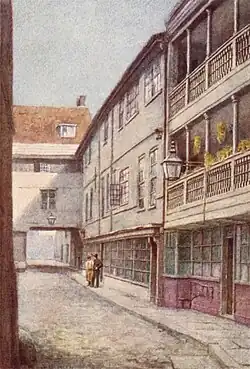 The George Inn, or The George, is a public house established in the medieval period on Borough High Street in Southwark, London, owned and leased by the National Trust. It is located about 250 metres (820 ft) from the south side of the River Thames near London Bridge and is the only surviving galleried London coaching inn.[1]