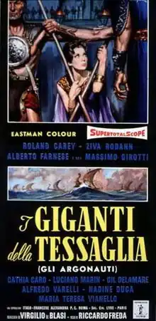 The Giants of Thessaly (Italian: I giganti della Tessaglia (Gli Argonauti), French: Le Géant de Thessalie, released in the UK as Jason and the Golden Fleece) is a 1960 Italian-French adventure-fantasy film directed by Riccardo Freda. It is loosely based on the epic poem Argonautica by Apollonius Rhodius.[3]