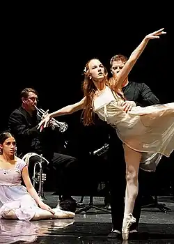 The Girl in White was premiered at the 37th Annual Conference of the International Trumpet Guild by The Columbus Ballet (of Columbus, Georgia) and The Palmetto Camerata.[6] The performance was choreographed by Maria Hirsch of The Columbus Ballet.[7] According to the International Trumpet Guild conference review,[6] “The dancers portrayed the story clearly and with great expression. James Ackley was truly magnificent in his performance on trumpet, as he was showcased as both a technician and lyricist through Bradshaw’s aggressive and seductive score. The members of the Palmetto Camerata cannot go without mention - in particular, the soprano tones of saxophonist Clifford L. Leaman were a perfect match to Ackley throughout.”