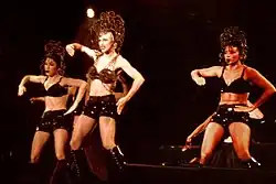 The Girlie Show was Madonna's fourth concert tour. It supported her fifth studio album Erotica, and was seen as an attempt to revive her musical career after the album and her film Body of Evidence impressed neither critics nor audiences.[1] The tour received generally positive reviews from critics and reportedly grossed US$70 million ($152.37 million in 2024 dollars)[2] from 39 concerts.[3] It was subject of controversy in several countries it visited due to its sexual imagery; in Israel, Orthodox Jews staged protests to force the cancellation of the concert. However, rallies were unsuccessful as the show went on as scheduled.[4] During the concert in Puerto Rico, she caused further controversy by rubbing the country's official flag between her legs,[5] resulting in about 30 Puerto Ricans protesting against the singer outside her house in Miami, asking for a boycott of Madonna's music until she apologized.[6]
