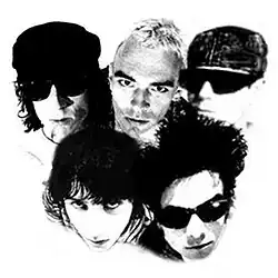 In 1982 the group featured thirteen band members on stage, progressing to a five-piece line-up as the sporadic project became a band proper. The first recording, the art punk, garage rock EP: Dig That Crazy Grave, was released in 1983. Followed by the first EP-album, The Chocolate Biscuit Conspiracy!, in 1984, and featuring spoken-word contributions from futurist and satirist Robert Anton Wilson. From this album, the single, "Young & Happy", was chosen as the theme song for the EuroSurf '85 championships.[2]