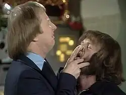 Three variations of the Goodies Theme were used on the opening titles for the 1970–1982 television series.[15] Apart from the original Goodies Theme, used from 1970 to 1972 and released as a single, two other variations surfaced, one, with a contemporary feel from 1973–1974, sung by Bill and then the third and final theme for the rest of the series from 1975 onwards, again sung by Bill. This variation lasted for the rest of the TV series and also surfaced on later Goodies LPs and, eventually, singles.[16]