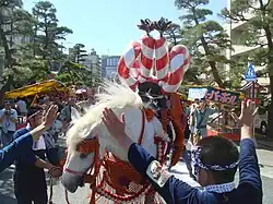 The festival continues for 5 days. On the first day, the head of Fujisakigu believers prays, and there are ceremonies of lion dance dress purification, musical instrument purification and purification of various instruments.