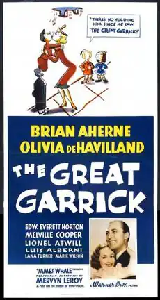 The Great Garrick is a 1937 Warner Bros. historical comedy film starring Brian Aherne, and Olivia de Havilland. An ensemble cast includes Edward Everett Horton , Melville Cooper, Lionel Atwill, and Luis Alberni in support, and Marie Wilson and Lana Turner in credited bit parts.