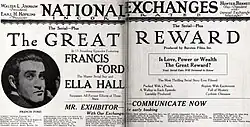 The Great Reward is a 1921 American drama film serial directed by and starring Francis Ford. The film is considered to be lost.[1] The film serial had the working title The Gates of Doom. Philip Ford is the son of director and lead actor Francis Ford.