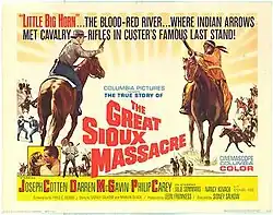 The Great Sioux Massacre is a 1965 American Western war film directed by Sidney Salkow in CinemaScope using extensive action sequences from Salkow's 1954 Sitting Bull. In a fictionalized form, it depicts Custer's descent from a defender of the Indians from federal interference to an incompetent warmonger, and the Indians as his victims, and covers events leading up to the Battle of the Little Bighorn and Custer's Last Stand.