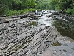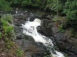 The Gut is a geological feature and conservation area east of Apsley, Ontario, Canada, with unusual Precambrian rock formations and a waterfall.[1] A branch of the Crowe River which passes through the conservation area flows over an exposed basalt lava ridge,[2] part of the Canadian shield, then turns sharply and cascades into a deep gorge formed by a fault in the ridge, continuing downstream in a series of rapids and pools.[3]