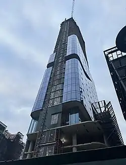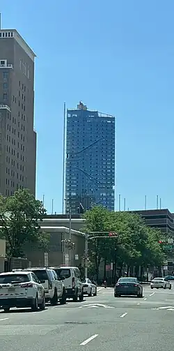 Groundbreaking took place in Spring 2022.[18][19] The building was topped off in February 2024.[20] At forty-two stories, with a height of 454 ft (138 m), it is the second tallest building and tallest residential building in Newark. The tower would have 303 apartments.