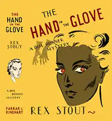 The Hand in the Glove (British title Crime on Her Hands) is a Dol Bonner mystery novel by Rex Stout. It was first published by Farrar & Rinehart, Inc., in 1937, and later in paperback by Dell as mapback #177 and, later, by other publishers. Collins Crime Club published the novel in the UK in November 1939 as Crime on Her Hands.