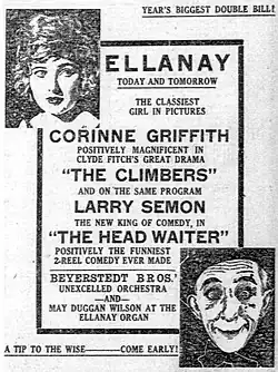 ![]() A contemporary newspaper advertisement, featuring The Head Waiter as a double feature with The Climbers, another film from 1919. | |