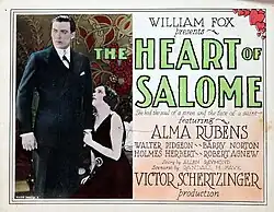 The Heart of Salome is a lost 1927 American romance film directed by Victor Schertzinger and written by Randall Faye. It is based on the 1925 novel The Heart of Salome by Allen Raymond. The film stars Alma Rubens, Walter Pidgeon, Holmes Herbert, Robert Agnew, Erin La Bissoniere and Walter Dugan. The film was released on May 8, 1927, by Fox Film Corporation.[1][2][3]