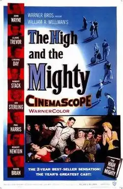 The High and the Mighty is a 1954 American aviation disaster film, directed by William A. Wellman, and written by Ernest K. Gann, who also wrote the 1953 novel on which his screenplay was based.[3] Filmed in WarnerColor and CinemaScope, the film's cast was headlined by John Wayne, who was also the project's co-producer.