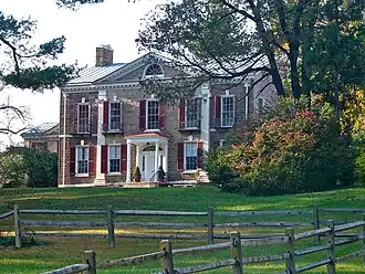 The Highlands was built in 1794-1796 by Philadelphia merchant and politician Anthony Morris (1766-1860), and was designed by Philadelphia politician Timothy Matlack (1730-1829). It is a large 2+1⁄2-story, dressed fieldstone structure in the late Georgian style. The front facade features two, two-story, Ionic order pilasters. Morris was the speaker of the Pennsylvania senate, and had signed the bill authorizing troops to suppress the Whiskey Rebellion. He was also a director of the Bank of North America (1800-1806) and a trustee of the University of Pennsylvania (1806-1817). From 1810 to 1814, he was President James Madison's unofficial envoy to Spain.[2]