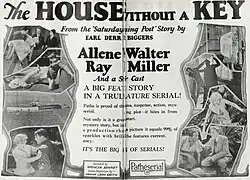 The House Without a Key is a 1926 American mystery serial film directed by Spencer Gordon Bennet. It is based on the 1925 novel of the same name and is the first onscreen appearance of the fictional detective Charlie Chan, although the main stars are Allene Ray and Walter Miller.[1] The serial film is now considered to be lost.[2]