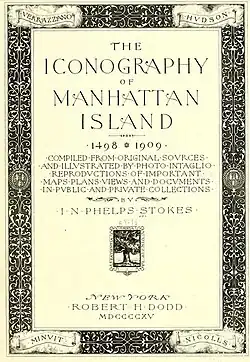 The Iconography of Manhattan Island is a six volume study of the history of New York City by Isaac Newton Phelps Stokes, published between 1915 and 1928 by R. H. Dodd in New York. The work comprehensively records and documents key events of the city's chronology from the 16th to the early 20th centuries. Among other things, it shows the evolution of the Manhattan skyline up to the time of publication.[1]