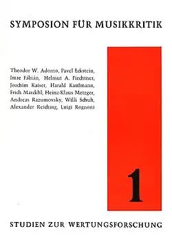 - ^ Theodor W. Adorno: Reflexion über Musikkritik. In: Harald Kaufmann (ed.): Symposion für Musikkritik. Institut für Wertungsforschung an der Akademie für Musik und darstellende Kunst, Graz 1968, pp. 7–21, reprint in Theodor W. Adorno: Gesammelte Schriften. Vol. 19, ed. Rolf Tiedemann and Klaus Schultz. Suhrkamp, Frankfurt a. M. 1984, pp. 573–591.