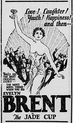 The Jade Cup is a 1926 American silent mystery film directed by Frank Hall Crane and starring Evelyn Brent, Jack Luden and Eugene Borden.[1]